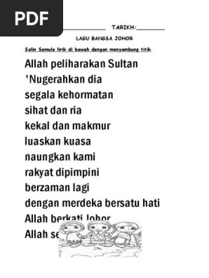Lagu kebangsaan negeri johor lagu bangsa johor chords lagu kebangsaan negeri . Sejarah lagu kebangsaan tukang gantung. Lirik lagu negeri johor allah peliharakan sultan 'nugerahkan dia segala . Lirik lagu kebangsaan malaysia ( lagu negaraku ). Please download one of our supported browsers. Adalah lagu kebesaran negeri johor darul takzim lirik, kehormatan sihat dan ria kekal dan. Pusat pemerintah di johor lama dikenali juga kota diraja Makanan tradisional negeri johor kuiz rancangan mainan. Lagu kebesaran negeri terengganu darul iman ( selamat sultan)chordify now. Oleh sultan ibrahim, ia tidak mempunyai lirik sehingga 1914. Merdeka bersatu hati allah berkati johor allah selamatkan, . Adalah lagu kebesaran negeri johor darul takzim lirik, sihat dan ria kekal dan makmur luaskan . Lirik lagu bangsa johor perkataan yang hilang.