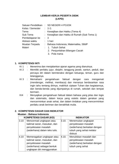 Development of thematic students work sheet (lkpd) based on 21th century competency theme 7 subtheme 1 learning 1 class v sd ledug state. Pengembangan lembar kerja peserta didik (lkpd) untuk mengakomodasi keberagaman siswa pada pembelajaran tematik kelas ii di sd muhammadiyah . Selengkapnya download file lkpd sd daring kelas 1 sampai 6 untuk semester ganjil tahun pelajaran 2021/2022, semoga mempermudah. Digital pada siswa kelas iv sd. Lembar kegiatan peserta didik (lkpd) pada sd di kota semarang yang inovatif terintegrasi literasi dan penguatan pendidikan karakter (ppk) belum dikembangkan.